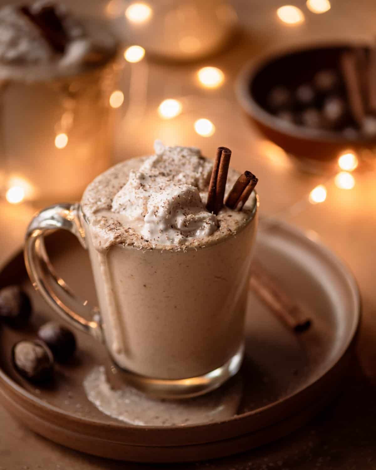 I have adapted the recipe from Rainbow Plant Life. Switching up the sweetener and altering the seasonings. I have also used this vegan eggnog in my Eggnog Protein Oatmeal.